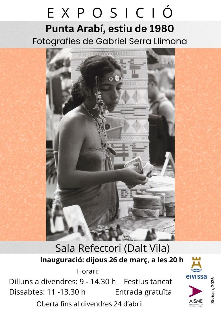 Exposició organitzada per l'Arxiu d'Imatge i So Municipal d'Eivissa (AISME) al Refectori de l'Ajuntament d'Eivissa, per mostrar l'adquisició de 40 fotografies realitzades per Gabriel Serra Llimona al mercadet de Punta Arabí (Es Canar) l'estiu de 1980 i que l'AISME va adquirir l'any 2024.