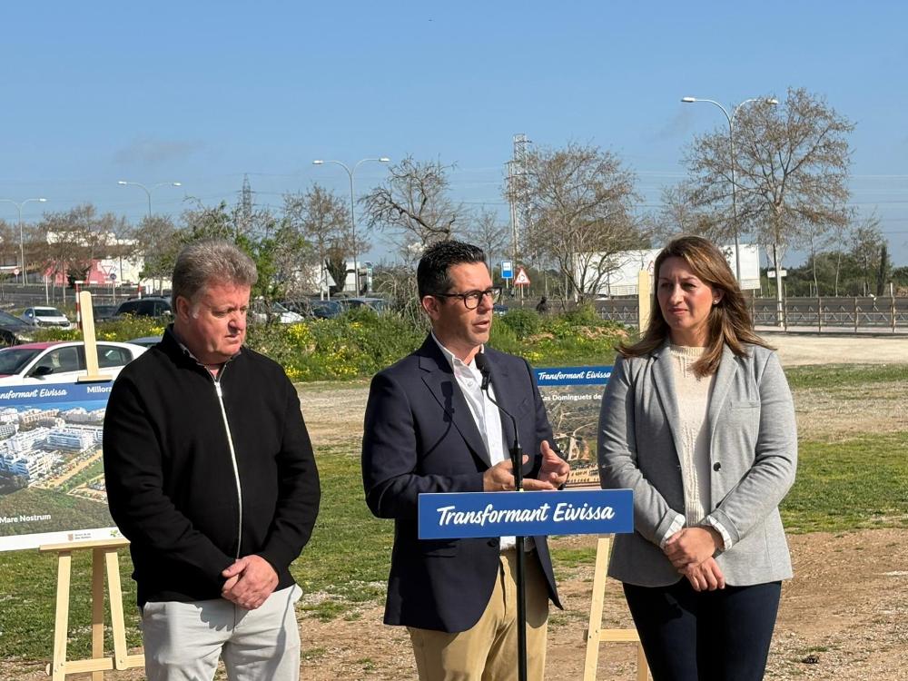El alcalde de Eivissa, Rafael Triguero, ha presentado hoy en el aparcamiento de sa Joveria-Cas Dominguets de Dalt el inicio de los trabajos, acompañado por Francisco Ferrer, representante de la Conselleria balear de Turismo del Govern balear, y por la concejala de Obras y Vías Públicas de la capital eivissenca, Blanca Hernández. El proyecto prevé la remodelación de 10 aparcamientos distribuidos por distintos barrios del municipio, con el objetivo de recuperar solares degradados o infrautilizados y convertirlos en espacios de estacionamiento ordenados y accesibles. En total, las actuaciones permitirán ordenar cerca de 1.700 plazas de aparcamiento en la ciudad, con la creación de unas 300 nuevas plazas, mejorando a su vez la accesibilidad con nuevas plazas reservadas para personas con movilidad reducida.