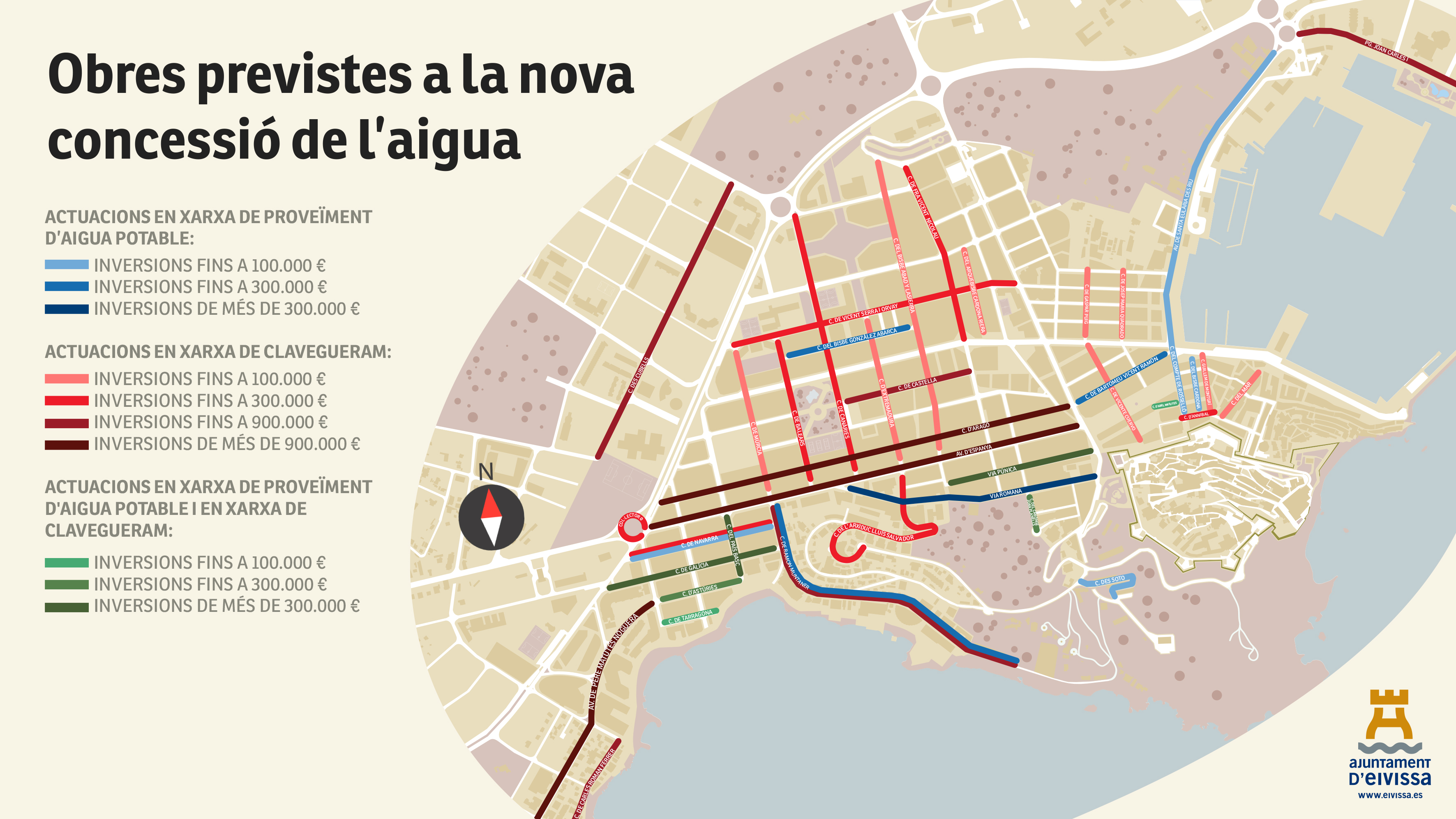L'alcalde d'Eivissa, Rafa Ruiz, ha afegit que 'amb aquesta nova concessió, preveiem la inversió més gran feta a la xarxa d'aigua i separatives dels darrers 25 anys. Això significa una millora contínua de la infraestructura de distribució de l'aigua. Minimitzarem també les fuites d'aigua i milloram la qualitat d'aigua que arriba a la depuradora'.