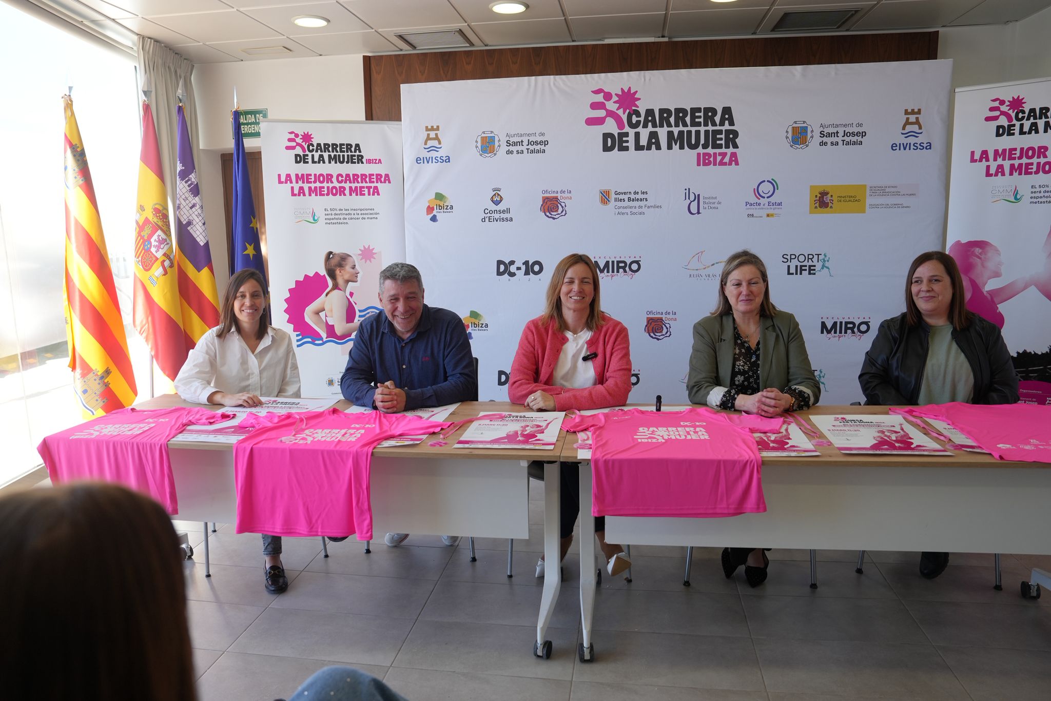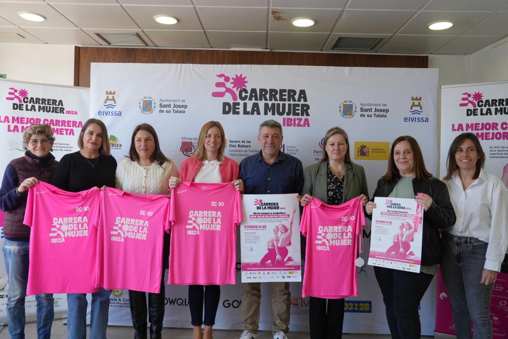 La plaça de Sant Jordi ha servit avui d’escenari per acollir la presentació d’una nova edició de la Cursa per la Dona. El Dia Internacional de la Dona tindrà aquest any una cita amb l’esport en una iniciativa conjunta de l’Ajuntament d’Eivissa i el de Sant Josep, que organitzen per segon any consecutiu una prova esportiva associada al circuit de curses de la dona que se celebra arreu d’Espanya i que l’any passat va aconseguir una gran participació i acollida.