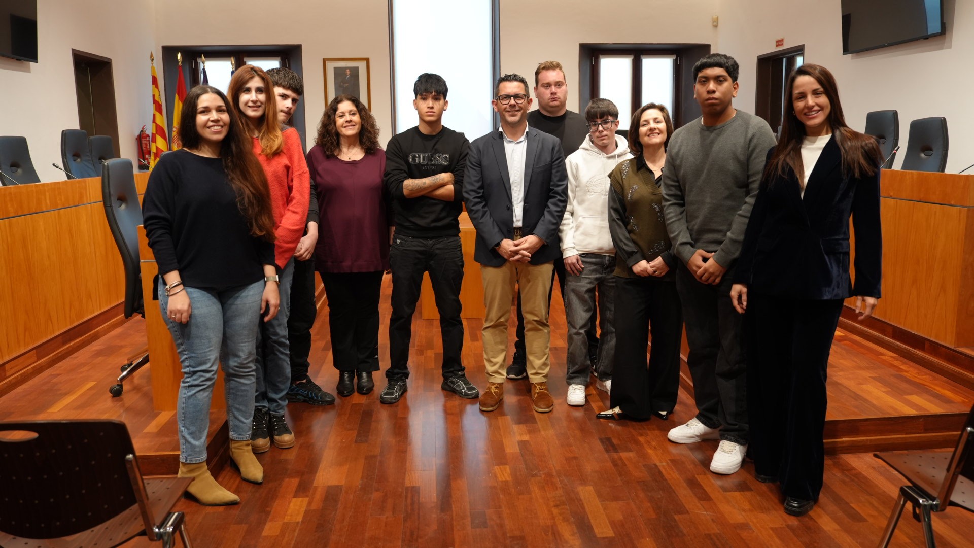 L’alcalde del Consistori d’Eivissa, Rafael Triguero, la primera tinent de batle i regidora del Servei d'Atenció al Ciutadà, Recursos Humans, Serveis Jurídics, Recursos Econòmics Gema Marí, i la directora insular d’Eivissa i Formentera han donat avui, la benvinguda als nous treballadors i treballadores de l’Ajuntament de la capital de l’illa i dels patronats, recentment incorporats gràcies als projectes de SOIB Impulsa’T 2025-2026.